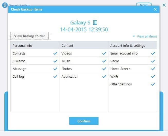 برنامج سامسونج سمارت سويتش للكمبيوتر الشخصي هو برنامج بسيط وعملي يُستخدم لنقل بيانات المحتوى بين الكمبيوتر والجهاز المحمول، وبين الجهاز المحمول والكمبيوتر. يُحوّل البرنامج جهات الاتصال والنصوص والفيديوهات والمقاطع الصوتية والمستندات والتطبيقات الأخرى بسلاسة من الأجهزة القديمة إلى الأجهزة الحديثة.